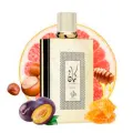 Uma explosão solar de mandarina e bergamota, iluminada pela suculência refrescante da pêra. Este prelúdio vibrante se abre para um coração opulento, onde a doçura caramelizada da flor de laranjeira se entrelaça com a sensualidade cremosa da tuberosa e do jasmim. A fragrância repousa em uma base intensa e contrastante, onde o calor do âmbar e a suavidade do cashmeran encontram a resina animalizada do ládano e a audácia surpreendente do couro.